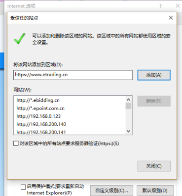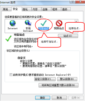 3、点击绿色的“受信任的站点”的图片,会看到如下图所示的界面: