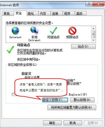 5、设置自定义安全级别,开放Activex的访问权限: