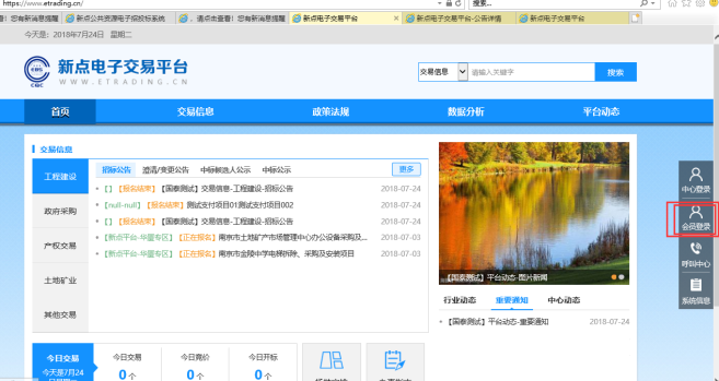 1、搜索网址:https://www.etrading.cn/ 进入“新点电子交易平台”,图下图所示,点击页面右边的“会员登录”按钮,进入用户登录界面