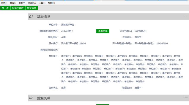 功能说明:投标人登录后可以进行本单位的程序库信息进行的录入,维护、修改并提交审核