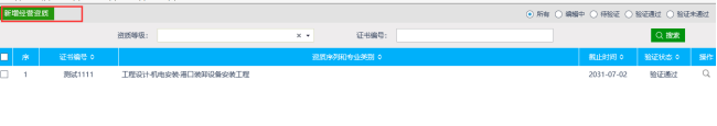 点击投标人基本信息下的“经营资质”菜单,在弹出的页面左上角点击“新增经营资质”按钮,如下图所示